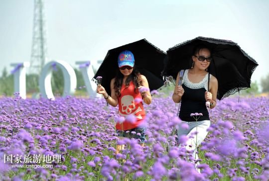 8月21日,游客正在寧夏中衛(wèi)市金沙島旅游景點觀賞薰衣草,該島坐落在騰格里沙漠邊緣。