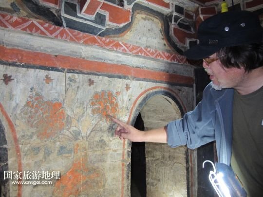 國家旅游地理 陜西延安9月15日訊 9月14日,考古學家正在查看畫像磚墓內(nèi)的壁畫。經(jīng)過近三個月的緊張工作,陜西省考古學家日前在陜西延安配合基建時,首次對一座宋金時期大型畫像磚墓進行了科學考古發(fā)掘。發(fā)現(xiàn)這座畫像磚墓竟是仿木磚結(jié)構(gòu)多室墓,對了解和研究陜北畫像磚墓形制、建筑結(jié)構(gòu)及其分布與內(nèi)容等,具有重要的標尺性意義。 /新華社記者馮國攝