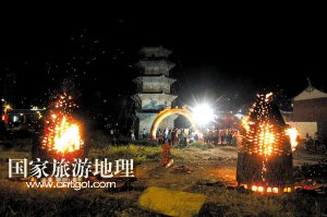 國(guó)家旅游地理 福建泉州9月20日訊(記者_(dá)黃偉強(qiáng) 秦越 文圖) 中秋夜,第三屆“燒塔仔”中秋民俗活動(dòng)在晉江安海安平橋畔白塔下舉行,兩座高4米、寬1.5米的磚塔里正冒著熊熊烈火,現(xiàn)場(chǎng)火光沖天,給安海老百姓帶來(lái)了別樣的節(jié)日歡樂(lè)。
