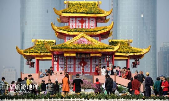 國家旅游地理 江西南昌11月7日訊 菊花展上微縮版“滕王閣”高9米(11月7日攝)。11月7日,在江西南昌市紅谷灘新區(qū)舉行的第25屆菊花展上,100萬盆各色菊花爭奇斗艷,吸引了眾多游客和市民前來觀賞。 /新華社記者 周科 攝