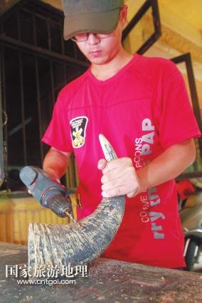 國家旅游地理 廣西柳州11月11日訊(記者陸旺楊春) 牽手漫步龍?zhí)睹琅?,并肩靠背沐浴晚秋暖陽,你會時常聽到一串串動人的音符:它時而渾厚圓潤、清脆響亮,時而輕靈縹緲、悠長凄美。不忍打破這份寂靜閑情,卻又忍不住猜想:這是何方人士,用何種樂器,吹拉彈撥出如此佳音?穿越叢林,循聲走去,瑤寨庭前,幾個年輕男女手握蘆笙,身子左搖右晃,吹得正起興。步入瑤寨一樓才發(fā)現(xiàn),這里儼然一個生產(chǎn)民族樂器的大工廠:木板、竹竿、鐵鋸、膠水、油漆,以及形狀酷似牛頭、牛腿、魚身、龍身等顏色各異、五花八門的樂器……一位正在給樂器上漆的中年人梁志榮告訴記者,這是龍?zhí)豆珗@正在籌建的民族樂器館,也是魚峰區(qū)創(chuàng)建廣西文化強(qiáng)區(qū)的特色景區(qū)之一,他現(xiàn)在是大龍?zhí)睹褡逅囆g(shù)團(tuán)團(tuán)長,研究、制作民族樂器將近20年,曾獲“廣西民間工藝大師”和“十佳民間藝人”稱號。