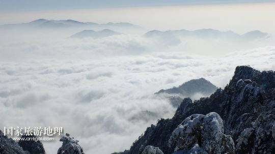國家旅游地理 安徽黃山12月22日訊 這是12月20日在安徽黃山拍攝的云海景觀。當(dāng)日,雪后放晴的安徽黃山風(fēng)景區(qū)云海翻騰,美不勝收。 /新華社發(fā)(水從澤 攝)