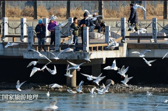 國(guó)家旅游地理 河北秦皇島1月13日訊 1月12日,一群海鷗在秦皇島市海港區(qū)新開(kāi)河入海口處覓食。隨著氣溫不斷下降,在秦皇島沿海一線越冬的海鷗開(kāi)始飛到市區(qū)內(nèi)的河道覓食,為冬日里的秦皇島市區(qū)增添了生機(jī)。 /新華社記者楊世堯攝