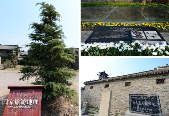 位于臺兒莊古城的臺兒莊大戰(zhàn)指揮所(左上)、民居(左下)和清真寺內(nèi)柏樹(右)上,仍保存著當(dāng)年臺兒莊大戰(zhàn)中留下來的彈孔(拼版照片,4月8日攝)。