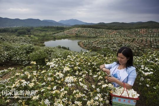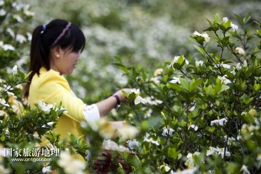 國家旅游地理 江西九江5月24日訊 5月24日,游客在黃梔子種植基地采摘梔子花。小滿時節(jié),在位于鄱陽湖畔的江西省九江市都昌縣土塘鎮(zhèn)潭湖村的坡嶺上,春輝黃梔子專業(yè)合作社6個種植基地的兩千多畝黃梔子全面進入盛花期,種植園內(nèi)芳香四溢。黃梔子是傳統(tǒng)中藥材,花朵可觀賞、食用,果實可用于醫(yī)藥、染色、化妝品等領(lǐng)域。成立于2007年的都昌春輝黃梔子農(nóng)民專業(yè)合作社近年來致力于實施科技推廣、標準化種植和專業(yè)化經(jīng)營黃梔子,將黃梔子從“飄香”經(jīng)濟延伸到“染色”“藥用”深加工,進軍省內(nèi)外市場。 /新華社發(fā)(傅建斌 攝)