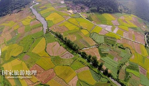 國家旅游地理 廣西柳州8月21日訊 8月20日在廣西柳州市融安縣泗頂鎮(zhèn)泗頂村航拍的田園風(fēng)光。“立秋”過后,地處桂北山區(qū)的廣西柳州市融安縣進(jìn)入稻谷收獲的季節(jié),金黃的稻田與原生態(tài)的山水風(fēng)光構(gòu)成一幅美麗的豐收圖。新華社發(fā)(譚凱興 攝)
