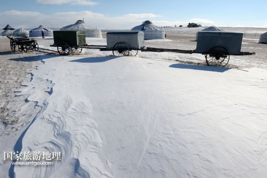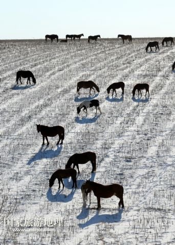 初冬的內蒙古呼倫貝爾草原 蔚藍的天空映白雪(圖)