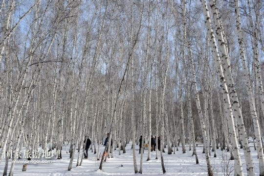 游人在內蒙古呼倫貝爾額爾古納市境內的白樺林中踏雪(11月8日攝)。