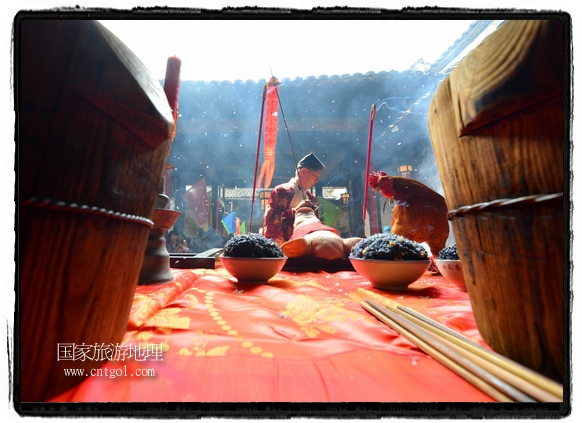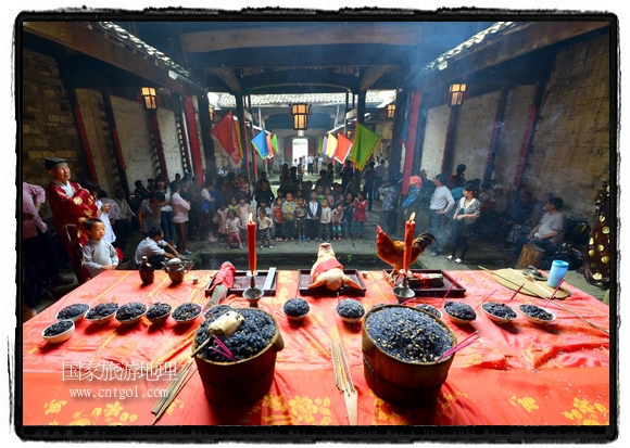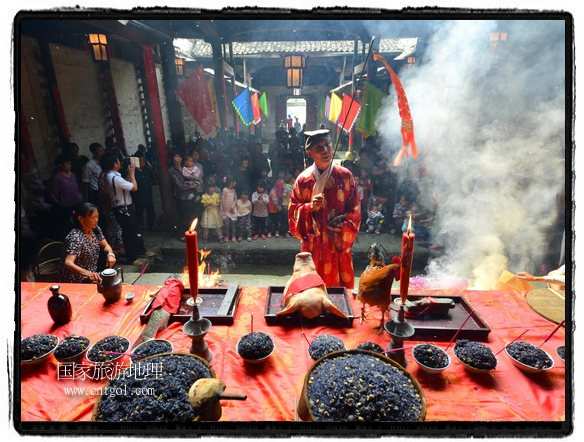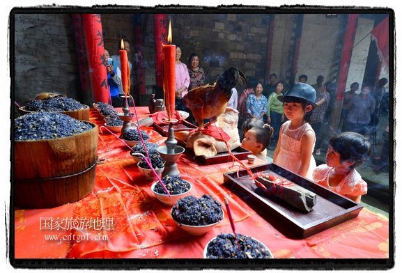 國家旅游地理 江西婺源(上饒)5月31日訊(特約記者王國紅 通訊員程新德攝影報(bào)道) “祭祀開始、鳴炮奏樂、祭拜、主持人講話、結(jié)束鳴炮”,5月25日,農(nóng)歷四月初八,石佛村烏飯節(jié),村民將自家精心制作的烏飯端進(jìn)祠堂祭祀。江西省婺源縣段莘鄉(xiāng)石佛村每年都要舉行烏飯祭祖活動(dòng),各家各戶將自家精心制作的烏飯端進(jìn)祠堂……
