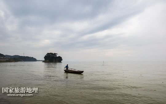 6月15日,一位漁民劃船行進(jìn)在鄱陽(yáng)湖江西都昌水域。