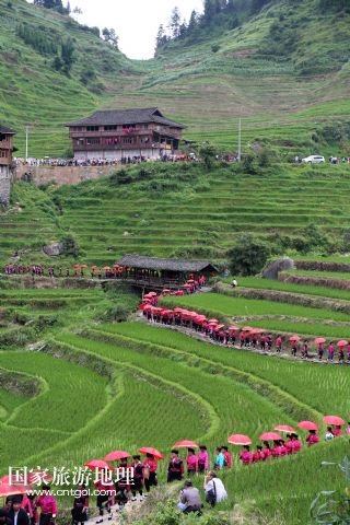 摘要:每年農(nóng)歷五月十四日、十五日是廣西桂林龍勝各族自治縣泗水鄉(xiāng)潘內(nèi)瑤寨紅瑤同胞與親朋好友聚會的日子,亦稱當?shù)噩幷摹凹t衣節(jié)”。紅瑤同胞相約在這期間開展唱瑤歌、評寨花、傳統(tǒng)刺繡、打旗公等傳統(tǒng)特色活動。紅瑤是瑤族的一個支系,因喜穿紅色衣服而得名。