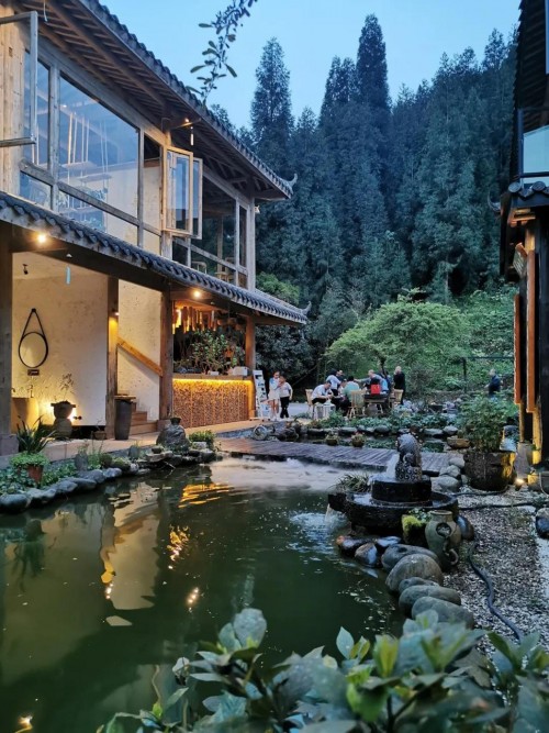 從成都主城區(qū)到眉山洪雅,自駕3個(gè)小時(shí)即可到達(dá),路況非常好。六七山居就在洪雅瓦屋山雅女湖旁,瓦屋山位于洪雅林場(chǎng)境內(nèi),被譽(yù)為全球最大的桌山,每年夏季,游客爭(zhēng)先到此避暑,每年冬季,游客蜂擁而至看雪。到了眉山洪雅,還可以順道去一下柳江古鎮(zhèn),去瓦屋山便會(huì)路過(guò)。在瓦屋山的層巒疊翠中,花溪河圍繞著具有獨(dú)特川南古民居風(fēng)格的吊腳樓,臨水而建,宛如一幅山水畫(huà)。